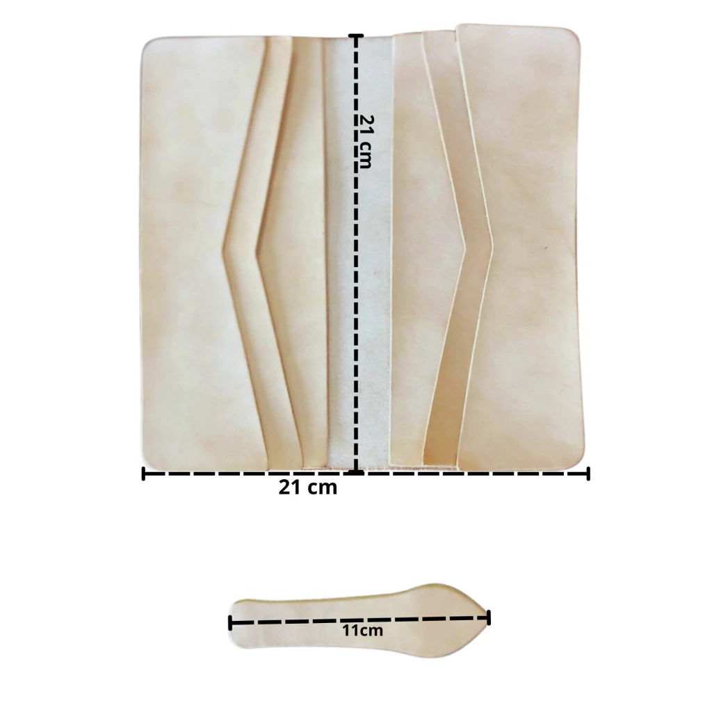 Espessura Adequada: A carteira possui uma espessura interna de 1,5 a 1,8 mm e uma capa externa com 2,5 mm, proporcionando a combinação ideal de durabilidade e sofisticação.